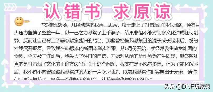 DNF贴吧第一红眼公开道歉,求当年被献祭的玩家原谅,称自己也想打团,你如何评价