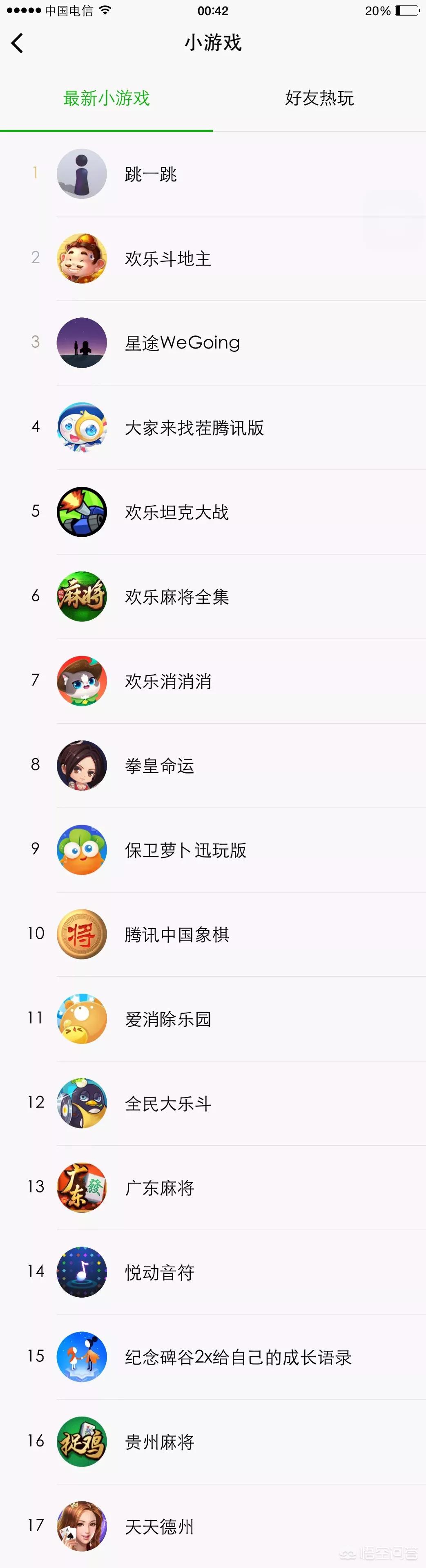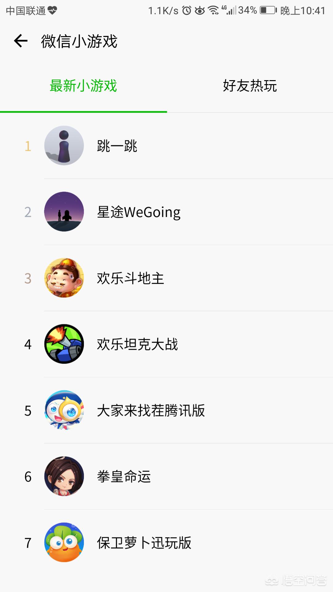 跳一跳,星途,头脑王者,猜歌达人,大家来找茬,欢乐斗地主等等,没事无聊的时候玩一玩,不仅可以舒缓心情,释放压力,例如跳一跳,还能从其中增长点学得一点知识,例如头脑王者