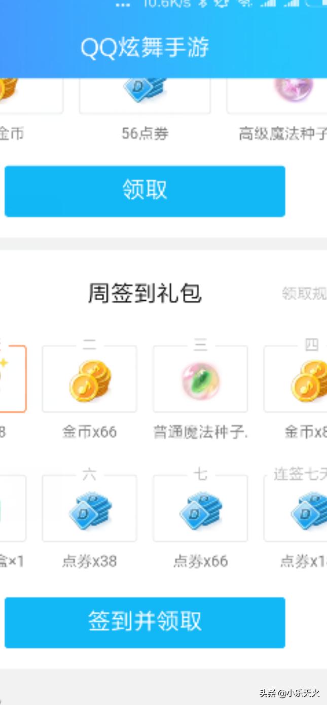 腾讯QQ ,打开手机qq动态-游戏里面有QQ炫舞手游,可以每天签到、金币、升级礼包等。
