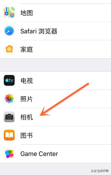 2、进去以后,下拉“设置”的界面,找到“相机”,如下图所示。