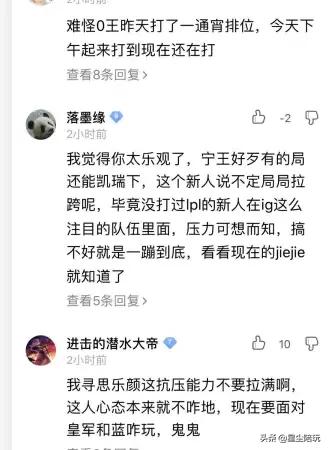 另外说一点,自从传小乐言即将上场宁将要替补之后,网友发现一直不爱训练的宁去韩服打了一夜的排位。