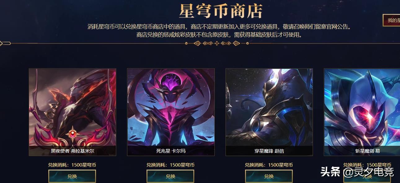 这次星穹耀夜活动讲实话,是一个蛮氪金的活动。但是你花钱多了话也有回报,因为星穹宝箱可以开出星穹币,星穹币可以兑换吸血鬼的黑夜使者、卡尔玛的死兆星、赵信的穿星魔锋,剑圣的斩星魔剑。如果小伙伴不想氪金,那么花一万五千买几个宝箱也是不错的。