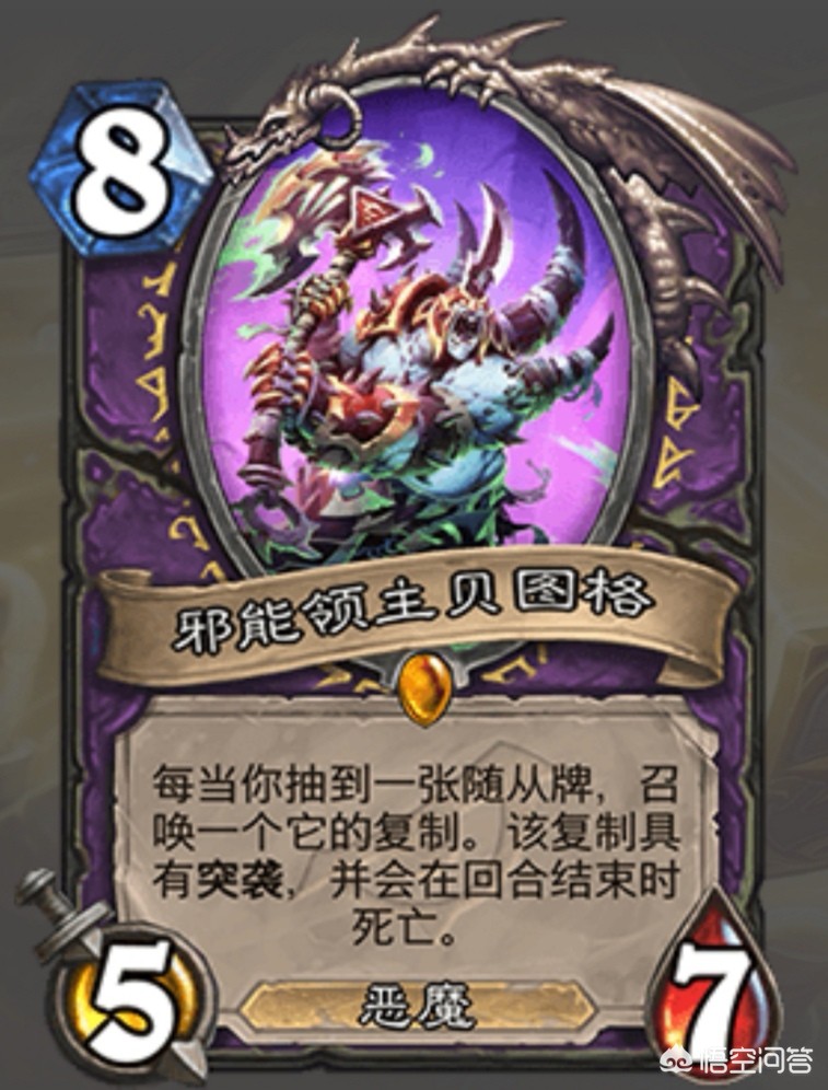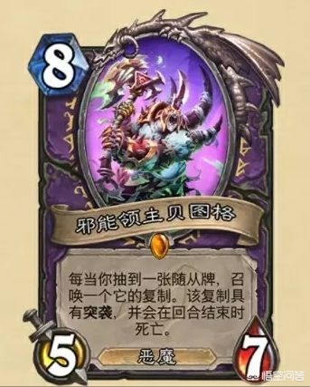 说实话这张卡当初被放出时还是挺让人看好的,毕竟术士的情势逆转+贝图格的combo可以让一瞬间拥有很高的场面,但是其立即死亡的DEBUFF除了破蛋之外似乎也没什么过多的优点了。最主要的一个原因就是术士自从还了魔块术的债之后一直都没有什么优质随从,所以贝图格的出现其实蛮尴尬的
