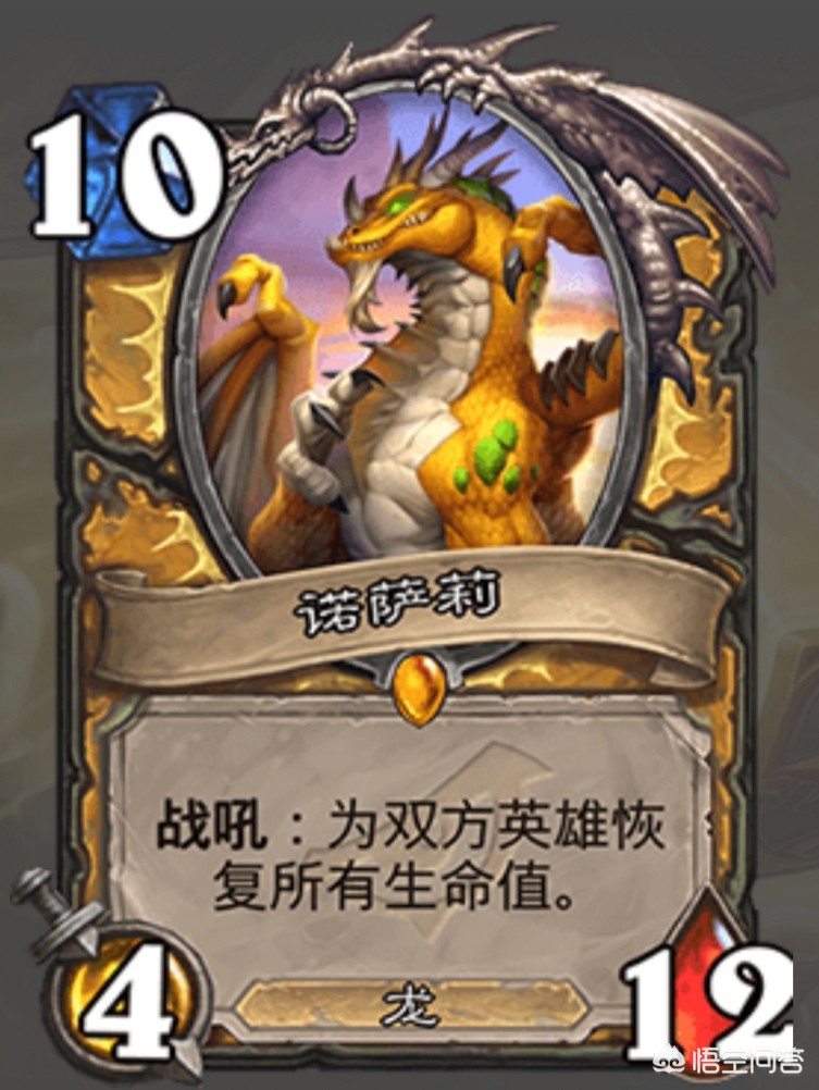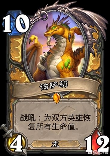 诺萨莉同样是一张高费的橙卡,表面上看非常适合龙骑,实际上这个版本的龙骑根本没法玩。而且标准缺少的东西比较多,如果后面的版本官方不进行超级刻意加强的话,诺萨莉就在标准寂寞一辈子吧。
