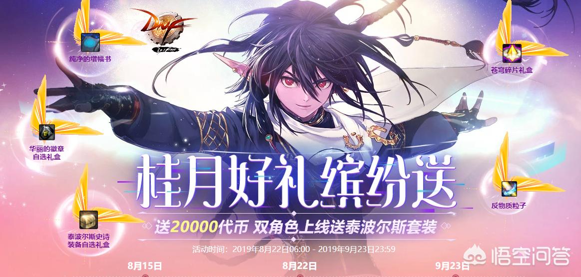 DNF8月22号更新之后出现了一大波新的活动,其中玩家们最看中的应该就属于“桂月好礼缤纷送”的活动了。且不说赠送的各种材料,装备可以加速我们角色的成长之外,主要就是这个活动有送2W代币券。