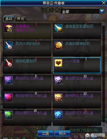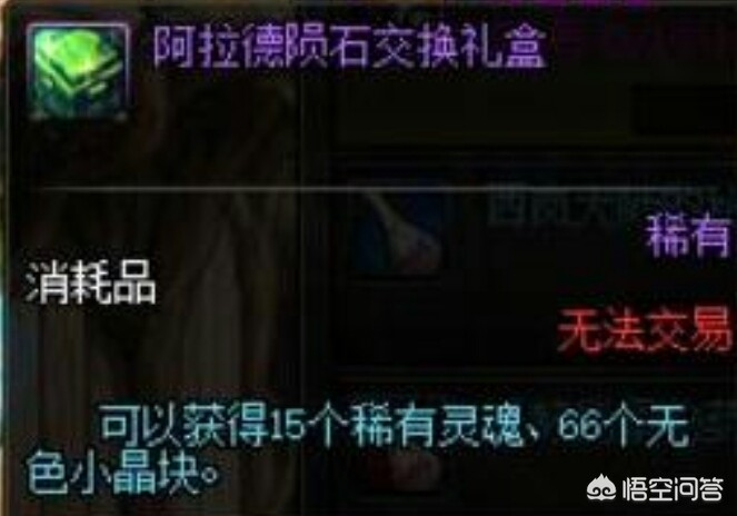 ①15个阿拉德陨石可以兑换一个阿拉德陨石交换礼盒,打开后获得15个稀有灵魂和66个无色小晶块。