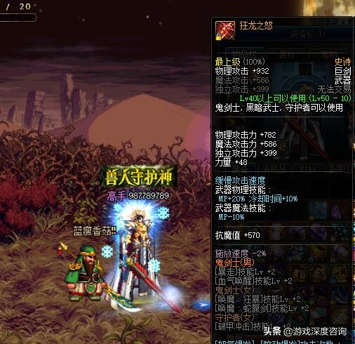 狂龙之怒是一把50级的史诗巨剑,是本人剑魂号上仅有的老版本史诗,这把巨剑整体以红色为主,手柄处有一个金黄色的骷髅头,给人一种阴深恐怖的感觉,从外形上来看,还是很霸气的。
