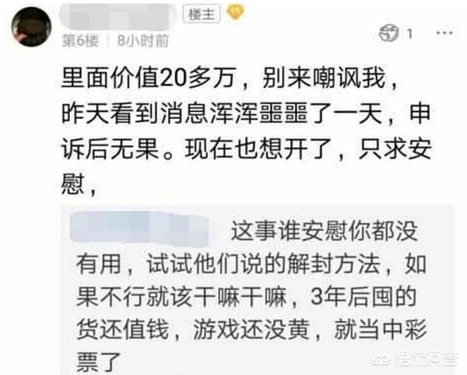 这位玩家瞬间觉得心灰意冷,表示自己看到封禁通知后,浑浑噩噩的过了一天,申述也没结果,只求大家一个安慰,也帮自己预测一下三年后物价会怎么样。