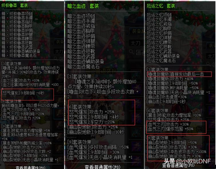 在85,86版本可以说是异界套百花齐放的版本,那个版本的时候很多玩家都会去刷异界装备,当时的异界装备是很难获取的,时至今日异界套已经被淘汰了,但是还是有很多有趣的异界套存在的,例如:剑宗的远古幻影(俗称:啪啪宗),天帝的暗影九,红眼的6+3,还有剑魂的七伤9,鬼泣的领域九等,有趣的异界套实在是太多了,小欧在这里就不一一介绍了,剩下的交给你们补充吧!