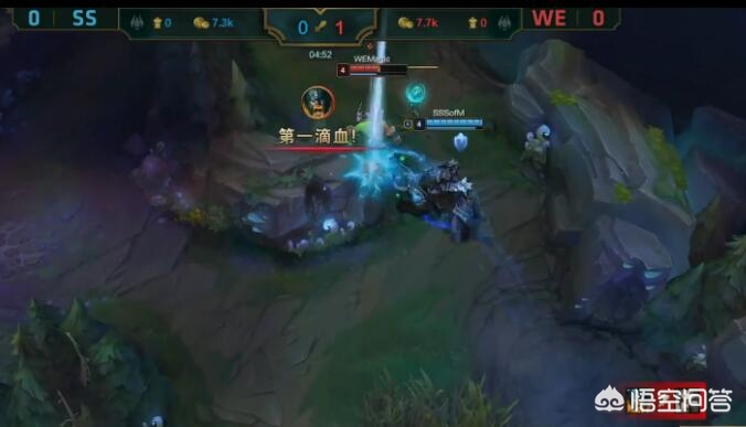 好在WE兮夜带领了几波节奏,先是下路四人包夹,直接用炸药包突到SS烬的脸上,当着布隆的面强行秒杀掉SS的AD,随后拿下下路塔,但上路青刚影率先拿到一血塔。