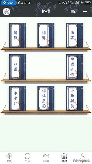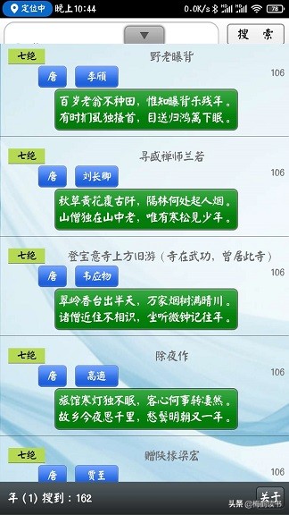 这个软件内置了海量古诗词,还有注解、鉴赏,支持关键字的标题、作者、原文、全部搜索,也可以按朝代、诗集、作者、类型等浏览,支持收藏。碎片时间,读诗背诗用这个软件很方便。我用两年时间背了八百多首,主要靠这个软件。我认为,想写诗填词,多读多背古人的作品是非常必要的。诗词没读过多少,只凭着一腔热血去写,是不成的。