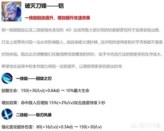 上个赛季铠增强之后俨然成了顶级上单,但是本赛季害怕铠的射手也不甘示弱,在新版本中迎来翻天覆地分变化,攻击范围增加,部分射手前期伤害也被加强,这很多上单很难扛过前期,而被称为“8秒真男人”的铠在四级也算半个超级兵,即便是有一技能的续航,铠也会被消耗的很难受,所以铠前期非常需要出一些防御装来抗压,而作为当前版本“最强”物理防御装极寒风暴就是绝配。