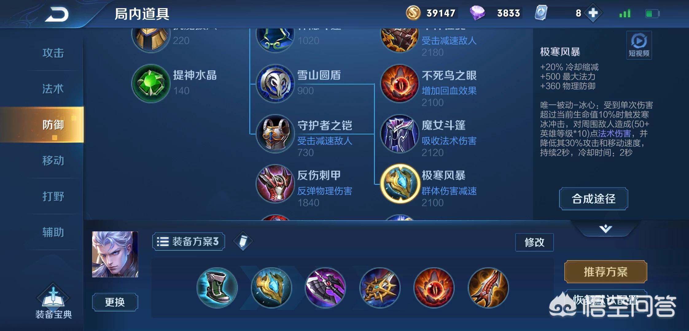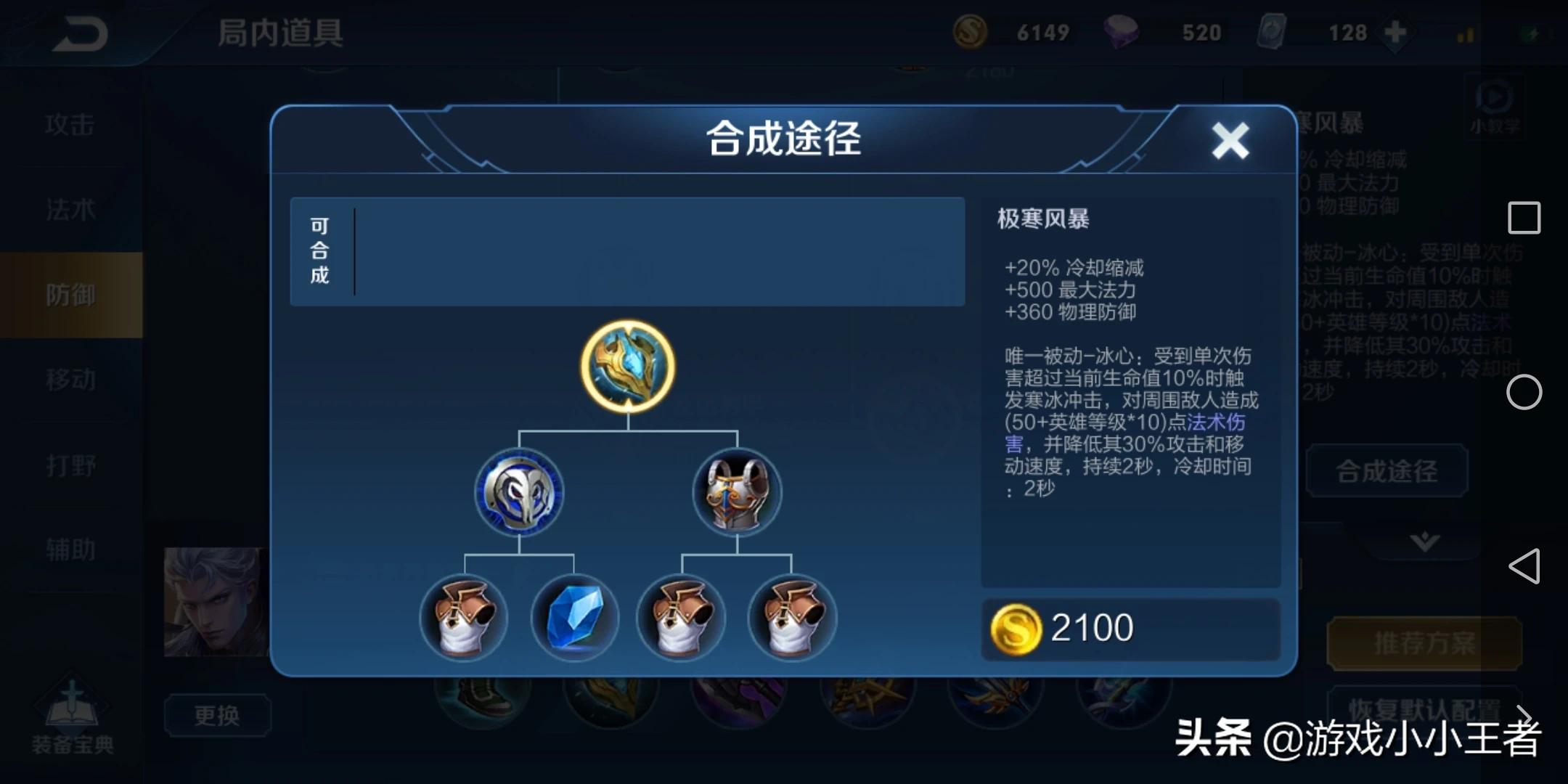 而全输出的铠虽然暴力,但是同样的容错率较低,所以需要出一件极寒风暴来提高护甲值,提高生存能力,特别是在前期的发育期,极寒风暴的重要性非常高。不仅有360点物理防御,还有20%冷却缩减,以及被动可以降低攻击者的攻速和移速。