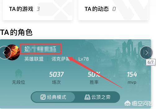 6、进入用户界面后,点击“TA的角色”下面的游戏ID,如图所示: