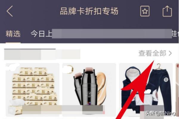 4、打开“品牌卡折扣专场”界面后,点击“查看全部”按钮,位置见下图