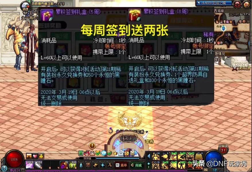 (2)每周签到活动,从1.14日起,每周四之前刷推荐图4次就可以完成签到,累计5周和累计8周,给送出一张永久天空升级券,这个活动的时间共9周,也就是说,只给了一次缺席的机会,一定要把握好时间,不能错过。