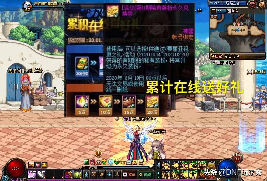 (1)累计在线得好礼活动,要求玩家每日在线2小时,累计在线20天,最后可以获得一个天空永久升级券,活动时间是到2月20日截止,也就是说共有35天时间,其中任意20天在线2小时,就可以入手一件永久天空!要走亲访友的,一定要计算好时间!
