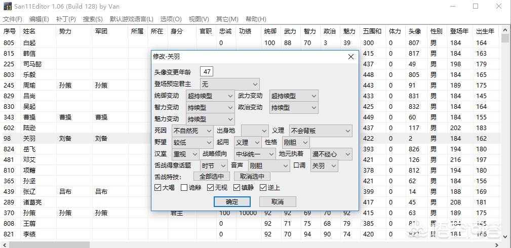 影响都督们进攻欲望的元素,主要来源于隐藏属性和野性。这两项属性在编辑功能里,实际我们都可以看到,隐藏属性光荣是采用武将ID编号来实现的,你可以对比查看下枫叔提到的这些进攻欲强的武将,他们的编号和普通武将有不同,但彼此却十分相似。这些编号可以给武将带来一些隐藏的属性,类似吕布武力+10这类,而野心在编辑中可以查看,野心越高,进攻欲望就越强。