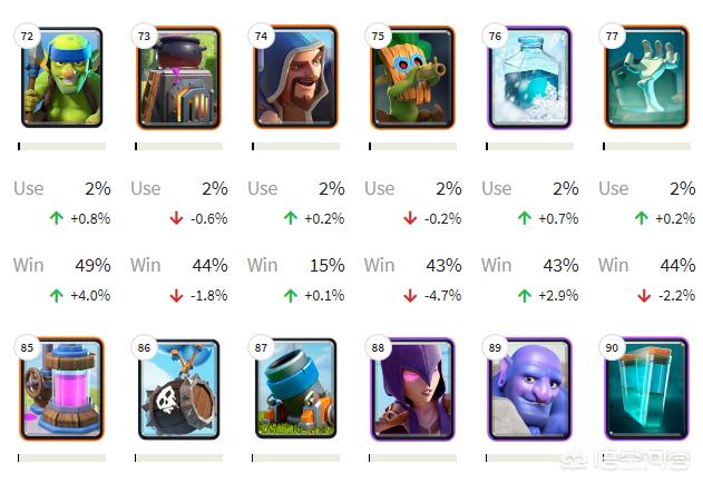 但是废柴看了一下火法的官方数据,目前使用率2%,胜率15%排在了第74位讲道理这个数据确实很尴尬,因为15%的胜率排在了所有卡牌的倒数第二位,就连使用率为零的皇家卫队、小电车还有30%以上的胜率,胜率倒数第一的是精锐,以14%的微小差距险败,不过下个赛季调整后,精锐可能会有所改观。