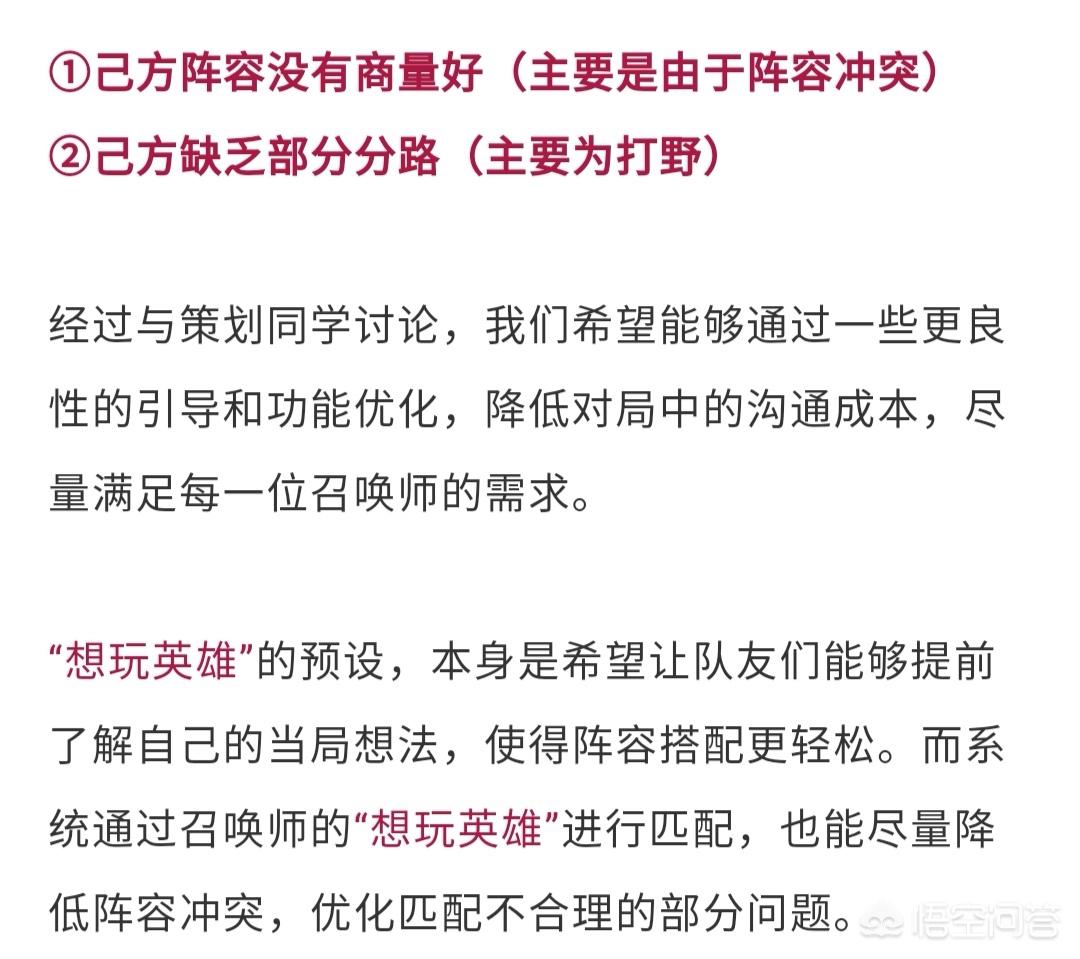 新版本的排位赛里,玩家可以提前设置好自己想玩的英雄,然后去匹配其他的队友,这样做貌似很不错,但是仔细想一下的话,其实你会发现,如果你选的是射手和法师的话会更难匹配玩家,为什么?因为大家都在玩输出单位,玩辅助打野上单的肯定就少了,供不应求啊,之前可能匹配十秒可能就有队友了,那么改版之后起码不得等个二三十秒。