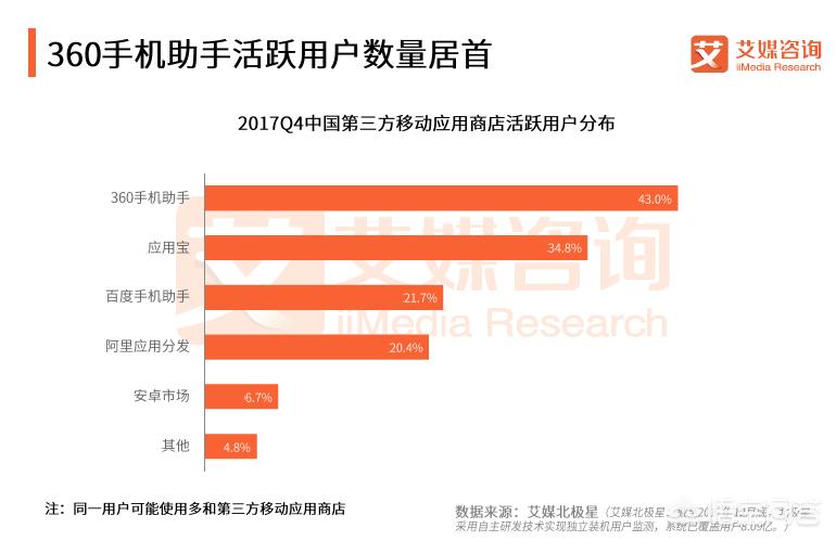随着移动互联网成为用户的生活标配,但其市场趋于饱和状态,硬件设备保有量增速显著放缓,用户增长红利逐步消失,市场开始进入挖掘存量用户的阶段。在中国科技技术以及人工智能技术的加持下,手机应用在智能手机上实现从衣食住行多样化生活场景的渗透。移动应用商店分为手机厂商和第三方移动应用商店,根据iiMedia Research(艾媒咨询)发布的《2017-2018中国移动应用商店市场监测报告》数据显示,截止至2017年第四季度,我国第三方移动应用商店活跃用户达4.64亿人。