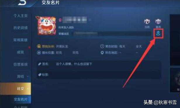 2、然后,进入资料界面,找到左侧的“社交”的选项。3、接下来,玩家在社区中,点击交友名片,找到定位图标。4、点击定位图标,在弹出的界面,可以选择自己的荣耀战区。5、最后,在首页左侧找到荣耀榜,就可以看到自己在定位地区的排名了。