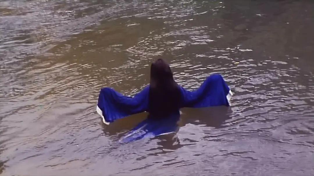 第二个镜头是男主下河看见的幻想,一群鬼勾肩搭背排着走,最诡异的镜头出现了,他在鬼里面发现了自己,还对自己来了个淡淡邪笑,简直渗人。