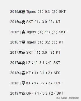 最后就是在LOL有很多玄学,其中关于LCK冠军的就有两个。一个是LCK史上下克上夺冠的故事只发生过3次,而这3次的主角都是SKT,他们分别在2015年春季赛、2016年春季赛和2019年春季赛完成了下克上赢得冠军,而最近的这一次,正是战胜的GRF。另一个是自从2015年OGN改组以来,SKT一共有6次打进决赛,战绩为5胜1负。输的那一次,正是输给由Khan带领的KZ,而现在这个当年击败过自己的队伍里的核心人物,就在自己家的上路,GRF要想报春季赛之仇,恐怕没那么容易。