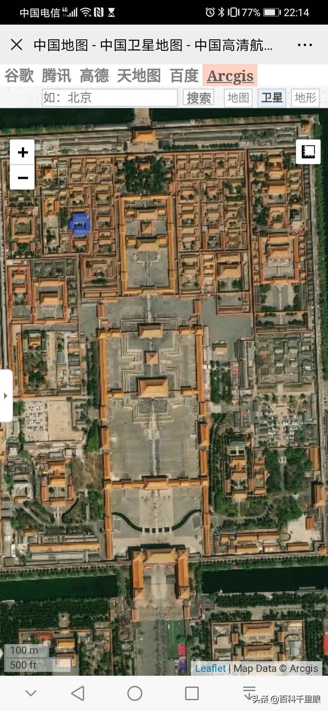 国内卫星地图(高德,百度……)放大后很多地方都不会有卫星地图了,我下载使用过【奥维互动地图】(这个地图实际上对接的是谷歌地图),直接下载谷歌地图貌似用不了,大家可以下载我说的那个地图试试,连小村庄都可以看到,下面截图是 深圳的世界之窗 北京故宫,我的家乡灵璧县下的一个小村庄,卫星地图非常清晰,国内的地图还真的没有比这个更清晰的了