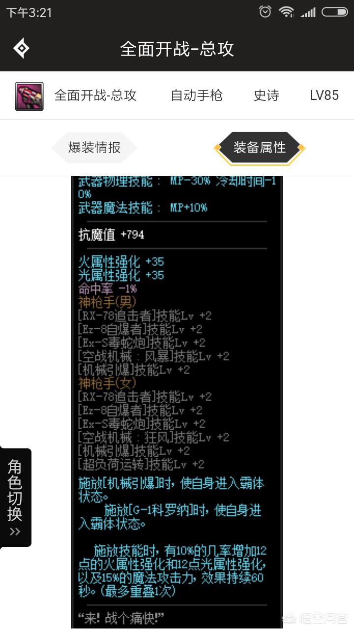 总攻与电钻手枪一样,技能的等级加成多,尤其是机械引爆、G-1技能增加霸体,属强方面加成,虽然没有特殊属性加成,但作为85级史诗,其高基础与高属强加成的情况下,女机械用起来虽然比起战神之怒略为逊色,但也,也是比较很强的自动武器。