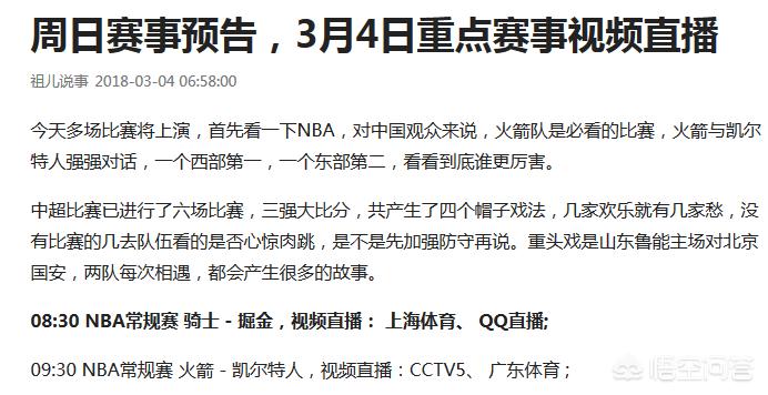 看标题各位就能明白吧?只有在腾讯才可以观看所有NBA比赛。当然除了中央5频道。中央五频道经常是不直播球迷爱看的球赛,例如:勇士对骑士直播它不转播,偏偏要直播步行者对开拓者。
