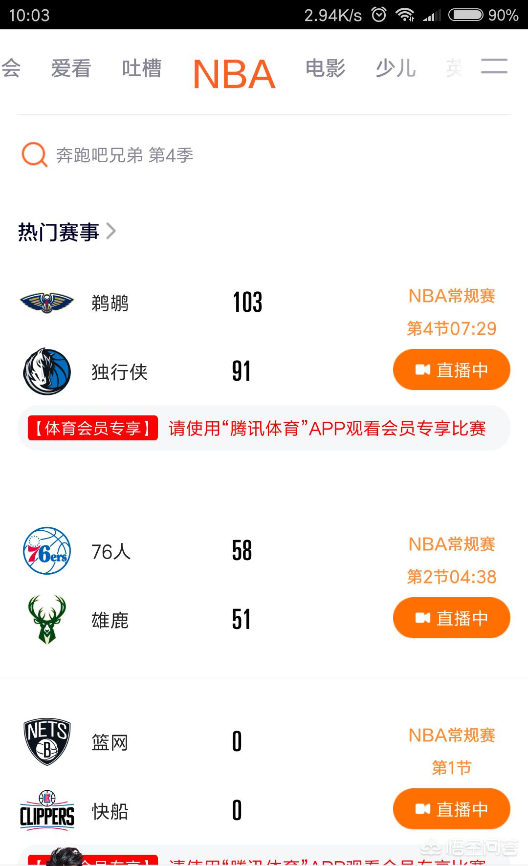 除了腾讯体育,基本就别想了。其它平台也是转播腾讯一些不用会员的视频而已。腾讯买断了nba的版权,你认为它会给你直播的机会?所以在网站的如果看文字直播的就一大堆,但是视频直播的就别想了,腾讯视频会员是你唯一的选择。因为妈蛋腾讯基本很多时候都是要会员的。如果在家的话,就可以看cctv5,电视就可以看到直播