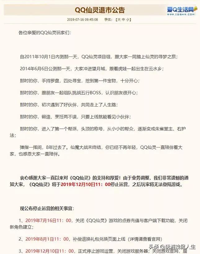 今天早上吃瓜无聊刷贴吧的时候发现了这一条消息,“qq仙灵”停服了,2011年十月一号开始测试测,到现在2014年正式公测,一直到现在2019十月,刚好8年的时间,这游戏也走向了尽头。不得不说这一年的时间内,腾讯有很多游戏都开始慢慢停服了,枪火游侠,战地之王等等,那么我这主要玩dnf的心里也有点担心。