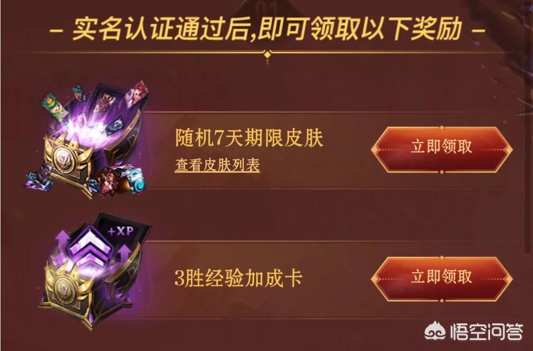官方为了让玩家们积极参与实名认证活动,也是准备了一点活动小礼品送给玩家,那就是随机七天期限皮肤和一张三胜经验加成卡。