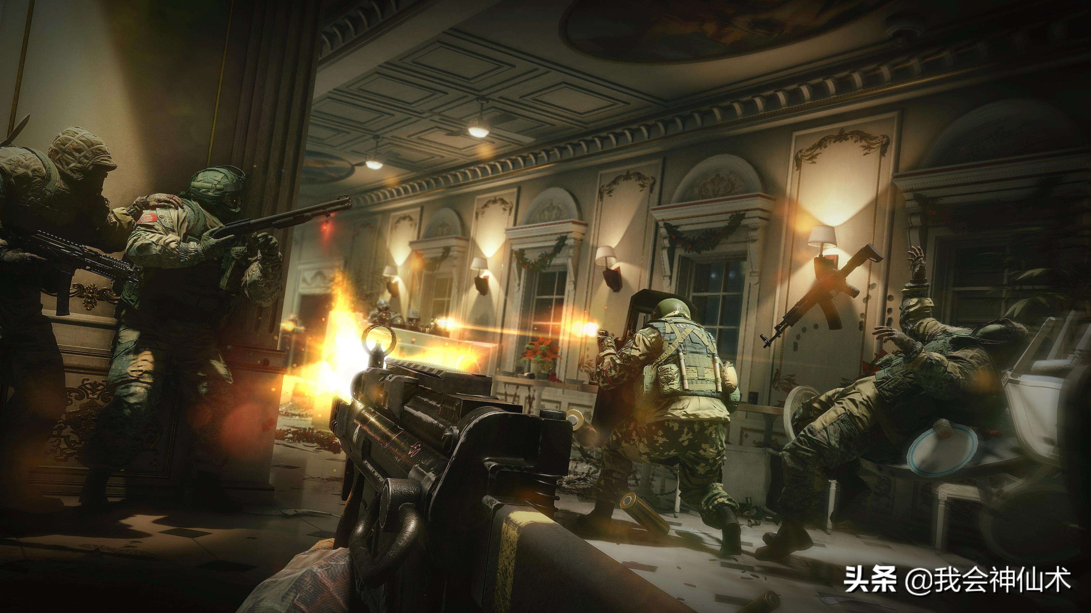彩虹六号围攻可不像COD那种冲冲冲的射击游戏,本作讲究智慧与指挥。玩家可以用多种方式入侵敌人的地盘,比如打穿墙壁,炸开地板,或者利用绳索从窗户突围 本游戏将领导玩家投入反恐行动之中、以新型态的突袭方式对付能将藏匿点部署为现代堡垒的敌方阵营。你得知道,在这款游戏中杀敌是其次,重点是你得学会部署或破坏防御墙。吃鸡类游戏,COD16