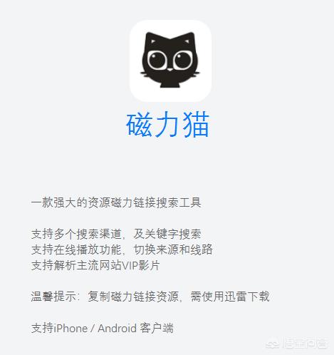 还在担心看不来最新的影视,还在担心搜索不到想要的资源?磁力猫完全可以满足你的这些需求,一款磁力搜索功能强大,支持视频搜索在线播放,强大如快播,推荐大家使用~