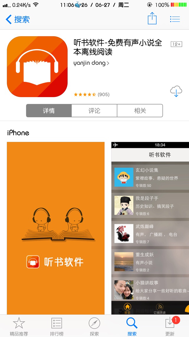 听书软件应用市场还是很多,个人可以根据喜好去选择,我个人用的比较多的喜马拉雅、Eotu、樊登读书,喜马拉雅不全是免费的,资源开放需要开通会员,Eotu免费听新闻、听小说,也支持本地TXT文件阅读,樊登读书每周一本精华解读,都还不错,个人根据喜好去选择吧