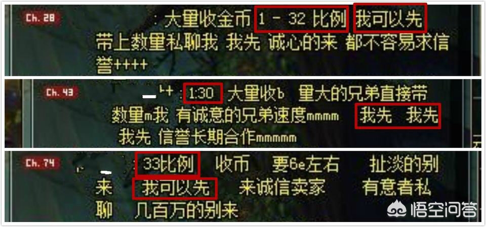 喇叭里面经常出现有“高价收游戏币”“我先”等喇叭,玩家们看到“对方先”都觉得很安全,然而,对方会利用拍卖行的竞拍系统,先和你小额交易,骗取信任,最后大额的时候动点手脚,(具体详情见我的另外一个问答)轻松骗取你几千万。