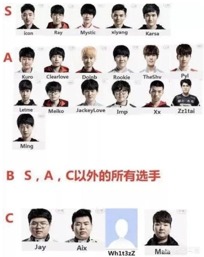 LOL这款游戏已经发展了九年,现在已经是成为国际性的游戏之一了,在历史的长河中,出现了许多优秀的选手,为我们奉献了一场接一场的精彩比赛。最近,有网友就制作了一份LPL选手的颜值表,分为了四个等级:S、A、B、C。