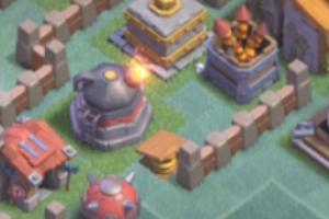 1.建筑大师大本营置于地图中心位置,迫击炮、电塔、双管加农炮放在旁边