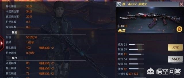 这把枪的弹道是非常迷但是用起来爆头率还是蛮高的,再加上作为AK系列的武器威力方面也挺大的!在刚刚出来这把枪的时候由于外观方面不怎么完美被玩家调侃像一根黑木炭一样!这把枪还可以觉醒;觉醒后的黑武士更加炫酷并且增加了额外的属性:超快换弹速度、挑战模式主弹量增加、生化模式伤害提升总体来说这把枪还是可以的。获取方式:通过抽取黑武士礼包获得的,一圈下来感觉得1000多RMB左右。