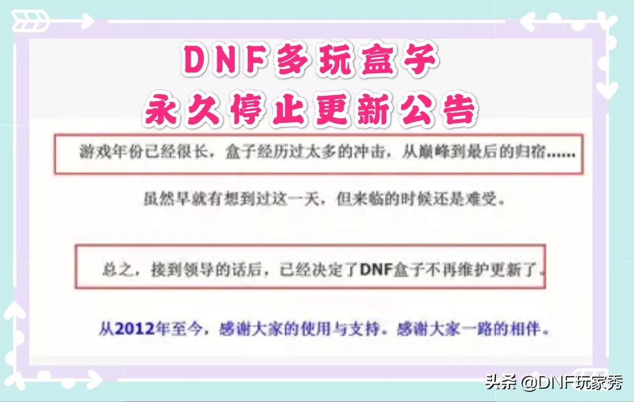 DNF多玩盒子发布永久停更公告,陪伴玩家多年的插件退出历史舞台,如何评价