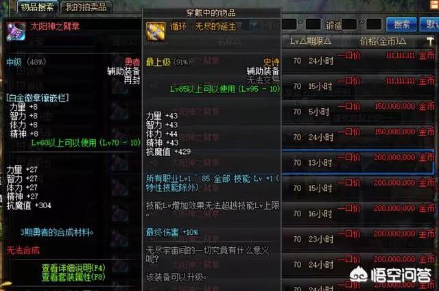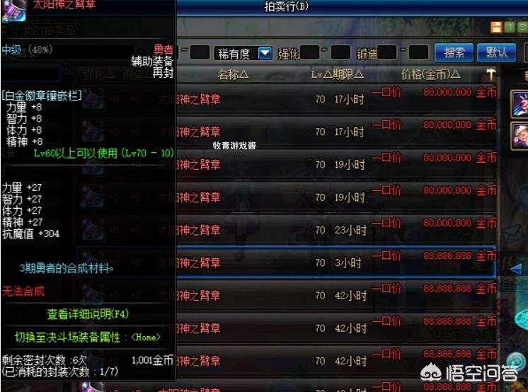 曾经在拍卖行上架上亿的抗魔石和太阳臂章,现在估计十万也没有人会要,还有那些囤这件装备的商人也可以收手了,再是传承系统的传承问题。用作传承的原装备在传承后会消失,简单来说就是带有技能宝珠或白金徽章的装备,在完成属性转移到新传说换装后,那件带技能宝珠或白金徽章的装备会消失,而且传承一次的时间是一个月。