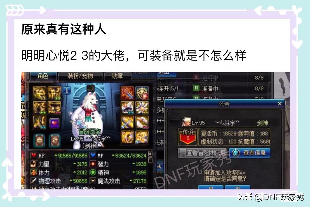 DNF心悦3剑魂玩家,面板才3176,他的钱用到哪了