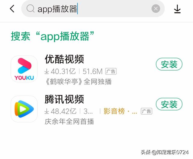 手机安装非常简单,打开你手机的“应用商店”,在首页最上面的一个像放大镜符号框里输入你需要下载的专用播放器的名字,再点击搜索。马上会出现许多app播放器,看你下载哪一个。旁边有一个“安装”,点击安装,手机会自动下载app播放器。简单迅速一会儿就下载好了。