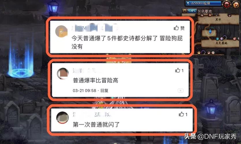 对于这个问题,先来看看勇士们的看法和亲身经历!有勇士现身说法:“今天普通爆了5件史诗装备,冒险一件没有”,“第一次普通就闪了”,“普通爆率比冒险高”!确实,从很多玩家反馈的数据来看,大号都是打的冒险难度,但是史诗的收获却非常感人,而小号打不过冒险,只能打普通,掉率反而还很高,甚至还有很多玩家,在普通难度下爆出了军神神话耳环!