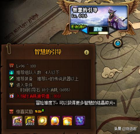 100级深渊智慧的引导,一共分为普通和冒险两种难度,其中普通难度对于玩家的要求是最小的,冒险模式就需要玩家拥有一定的装备之后,在可以快速的通关。